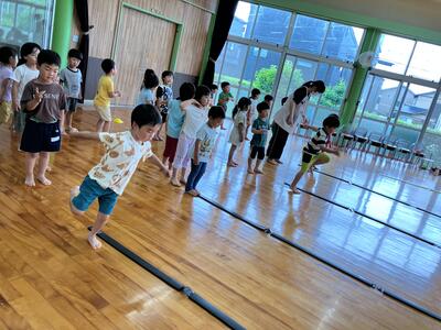 5月22日(木)に年少・年中組を対象に講師の方を招いて、運動遊び教室を行いました。