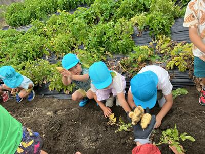また、年長組も、園で栽培していたじゃがいもを収穫しました。