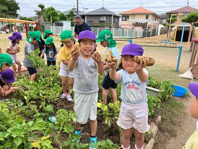 収穫したじゃがいもはそれぞれ持ち帰り、年少組さんにもお裾分けしました。
