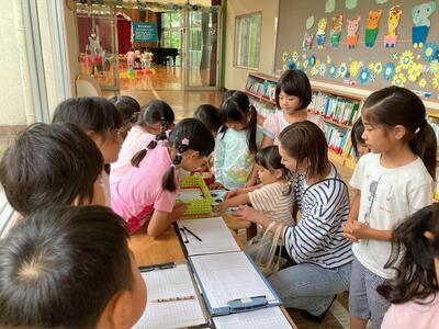 今年の『夏のお楽しみ会』は、コーナーを巡り、シールを集めて遊びました。
