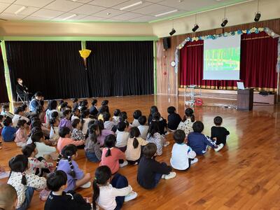「"いかのおすし"の森田さんだ!」と、昨年も講師で来てくださったことを覚えていた年中長児たちから声も上がりました。