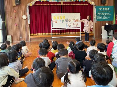 園長先生からの話の中で、運動会やお祭りごっこ、園外保育など、行事や地域との交流を楽しんだ2学期を振り返りました。たくさんの体験を通して、子どもたちが一回り大きくなったように感じられます。