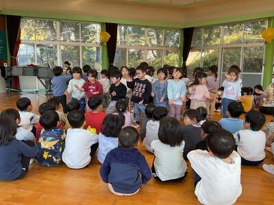 各学年、歌を歌いました。年少組は「♪サンタッタ」の歌を歌ったよ!
