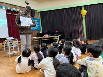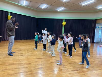 街の国際化に向けて、国際交流員がこども園を訪問し、園児が異文化に触れ、英語に親しみをもち、海外の文化に興味をもってもらう機会をつくることを目的に行っています。