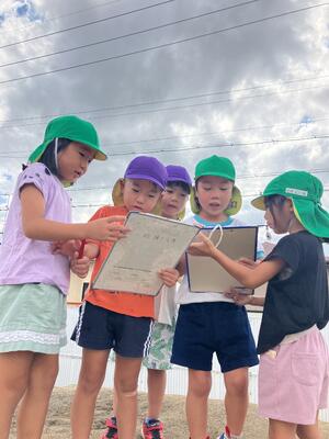 雲を観察している時に園長先生から「秋の雲と春の雲は何が違うのかな?」と投げ掛けがありました。家に帰って、お家の人と調べても「わからなかった。」と納得できる答えには行きつかない様子がありました。