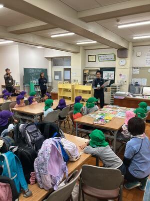 ミニ授業の後は、校内探検を行わせていただき、図書室、音楽室、保健室、職員室、放送室などを見せていただくことができました。「小学校って楽しいね。」と、就学への期待が高まってきています。