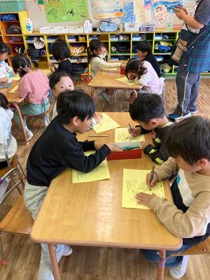 そこで「小学校の先生って頭がすごくいいんだって。」と話をすると、「教えてもらいたい!!」と小学校の先生へ手紙を書き、近くのポストに出しに行きました。無事手紙が届き、『秋の雲と春の雲について』お話をしていただけることになり、袋井北小学校に出掛けました。