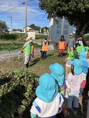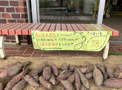 本日、北コミュニティーセンターのご厚意で、年中組が「どろんこ教室」の畑でさつまいも掘りをさせていただきました。