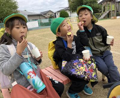 園に帰ってきてから、『若草こども園のお芋屋さん』でふかし芋を買い、お腹いっぱい食べ、満足そうな子どもたちの姿がありました。