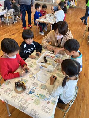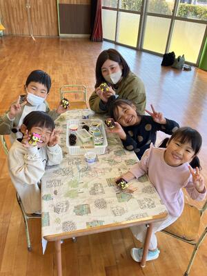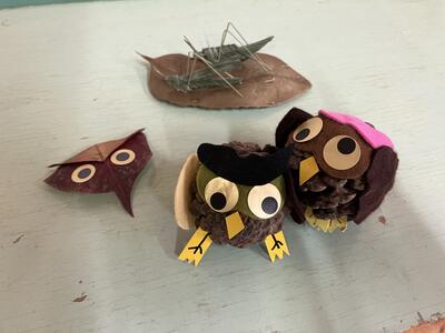 地域の"葉っぱ先生"こと、村松さんにお越しいただき、年中組を対象としたフクロウ作りをしました。