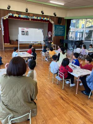 「"いかのおすし"の森田さんだ!」と、昨年も講師で来てくださったことを覚えていた年中長児たちから声も上がりました。